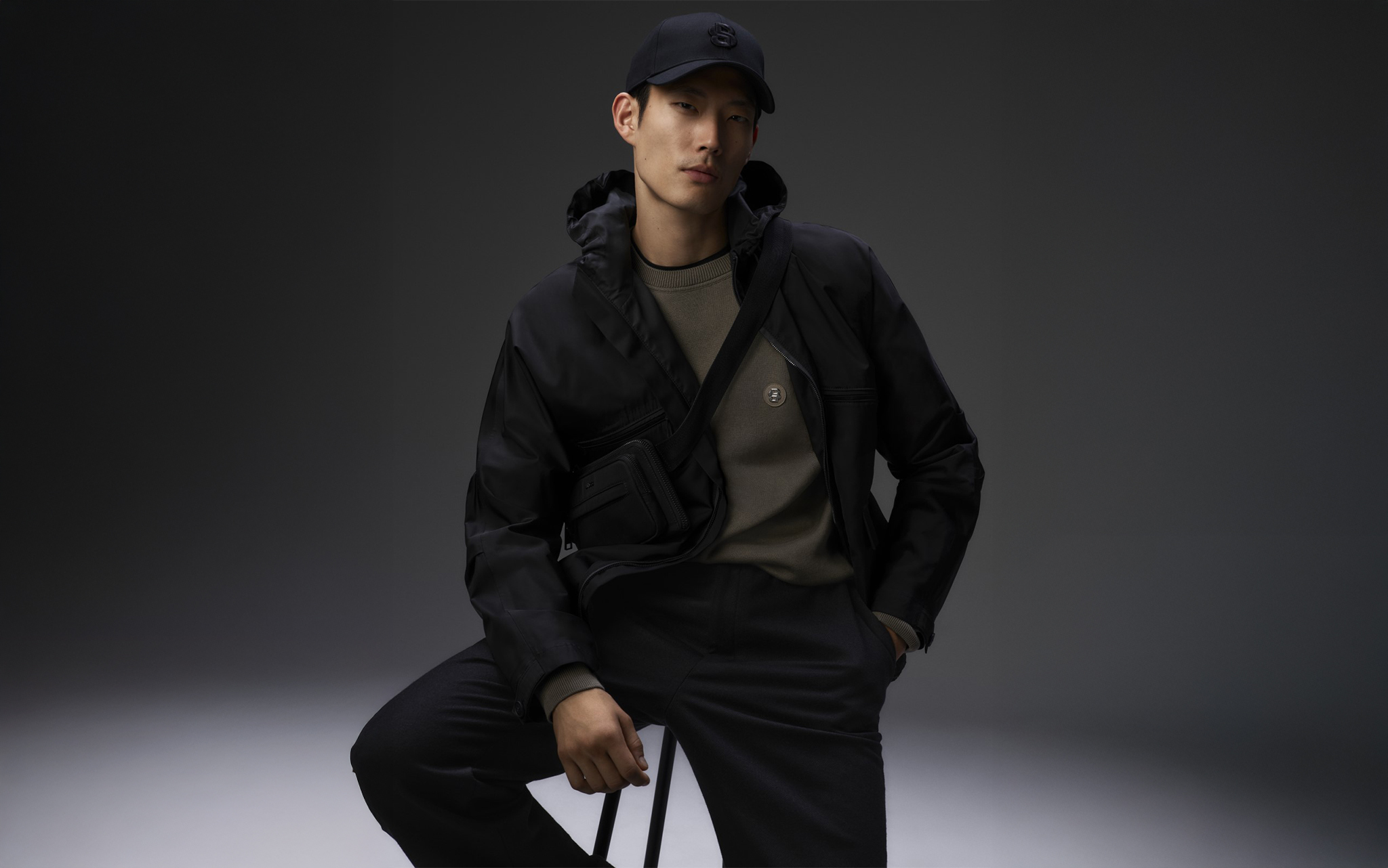 HUGO BOSS introduces AeoniQ™ 2-layer performance fabric. The first of its kind, crafted entirely from 100% AeoniQ™ and engineered for outerwear with a technical, future-forward edge.